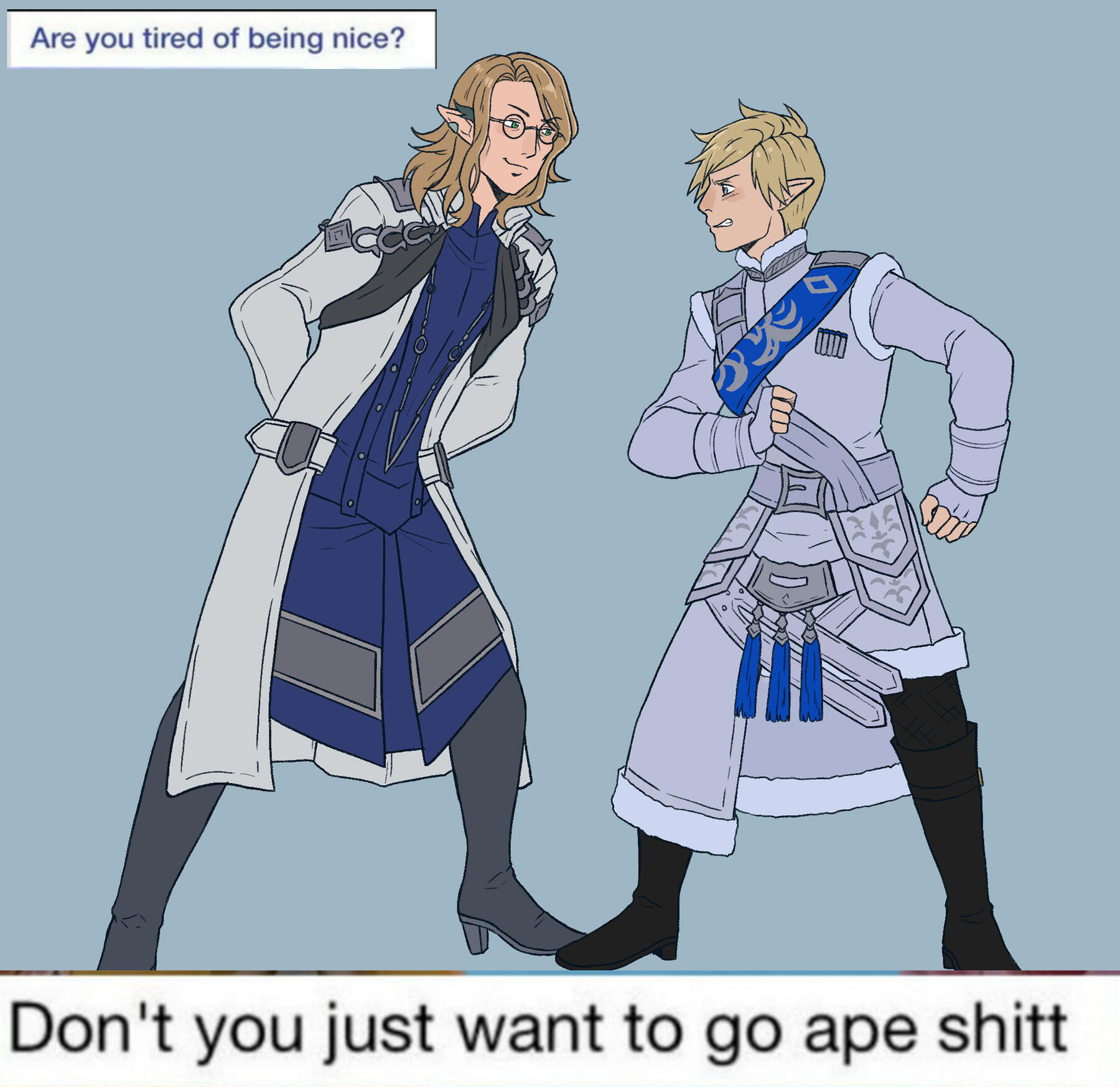 themes — traditional Ishgardian orthodoxy, soldiers without wars, tales of loss and fire and faith, caveats of a post-reformation republic, elves having midlife crisesavailability — I work from home, so there are times when I am available during weekday mornings and early afternoons. My availability in the evenings is a little erratic because it depends on how deftly I can put my kids to bed, so a good ballpark would be 8:30PM CST.writing style — Third-person present-tense paragraph RP is my default preference, but I'm happy to match the style of my writing partner. In-game is also my preferred medium of RP; as convenient as the notion of Discord RP sounds, it hasn't worked for me in the past.feel free to ask — If you'd like to RP with me, but aren't sure how to set things up, please drop me a line via PM or Discord. Tell me about your character and what you're hoping to get out of RP and I'm sure we can figure something out! If not, I have a handful of alts that might be more suitable, too.